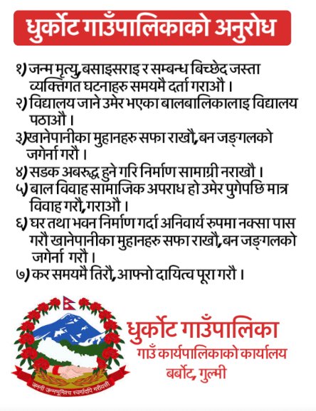 फुकुओकाको हाकातामा भएको विषेश कार्यक्रममा गुल्मेली समाज जापानका अध्यक्ष महेन्द्र कुमार अधिकारीको सभापतित्व, गुल्मेली समाज जापानका पुर्वअध्यक्ष तथा सल्लाहकार सालिकराम भण्डारीको प्रमुख आतिथ्यता र गुल्मेली समाज जापानका प्रवत्ता दिलीप थापाको संचालन र गुल्मेली समाज जापानका उपाध्यक्ष ज्योती केसीको स्वागत मन्तव्यमा सम्पन्न भएको थियो ।