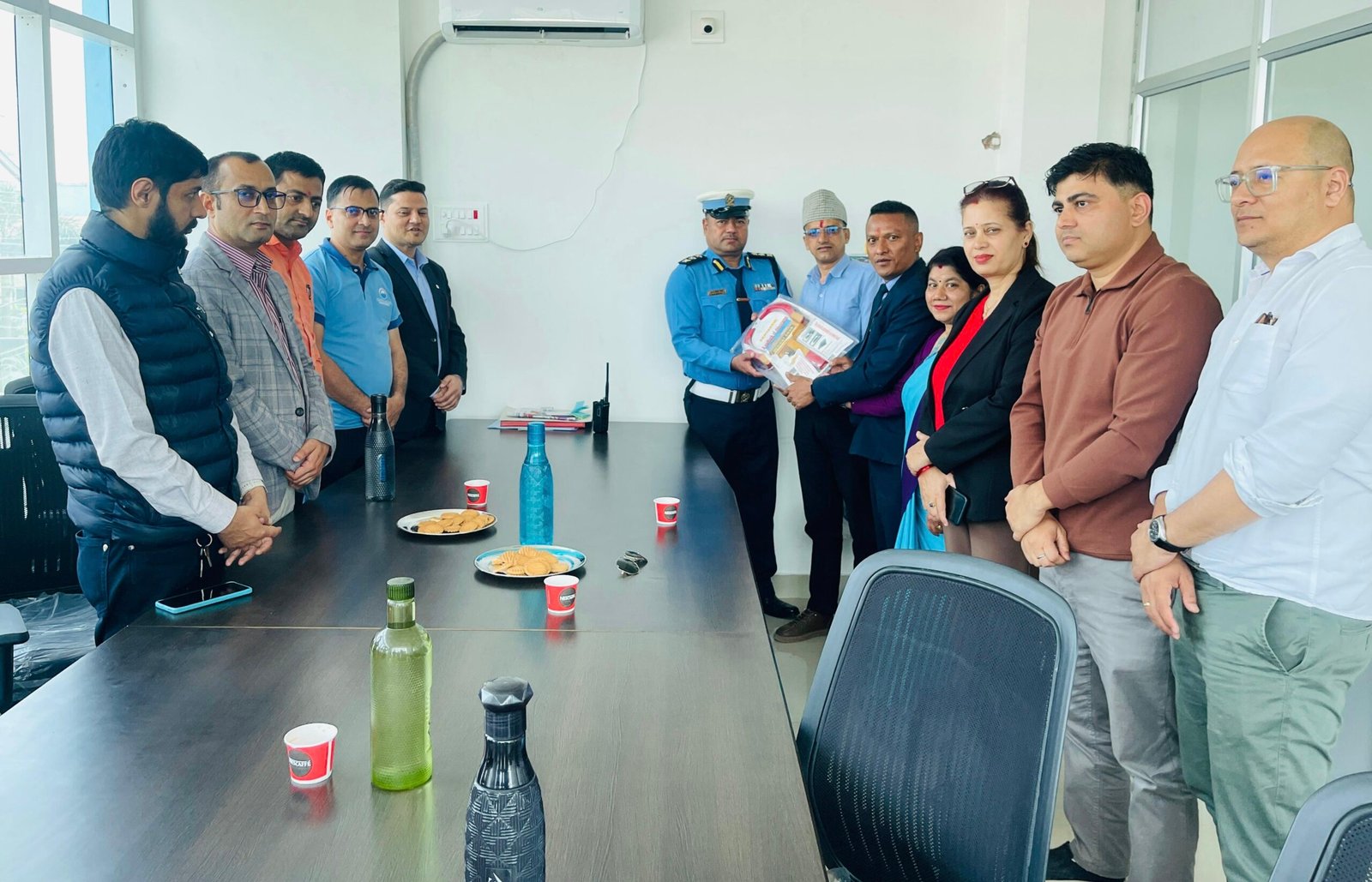 फाल्गुण २९ गते नेपाल विमा प्राधिकरण लुम्बिनी प्रदेश प्रमुख पुर्ण बहादुर थापाले लुम्बिनी प्रदेश अन्तरगत रहेका निर्जिवन विमा कम्पनीहरुको तर्फबाट लुम्बिनी प्रदेश अन्तरगत रहेका निर्जिवन विमा कम्पनीहरुको तर्फबाट नेपाल प्रहरी राजमार्ग सुरक्षा तथा ट्राफिक व्यवस्थापन कार्यालय बुटवलका कार्यालय प्रमुख प्रहरी उपरीक्षक श्याम बहादुर खत्रीलाई ट्राफिक सामाग्री हस्तान्तरण गर्नुभएको हो ।