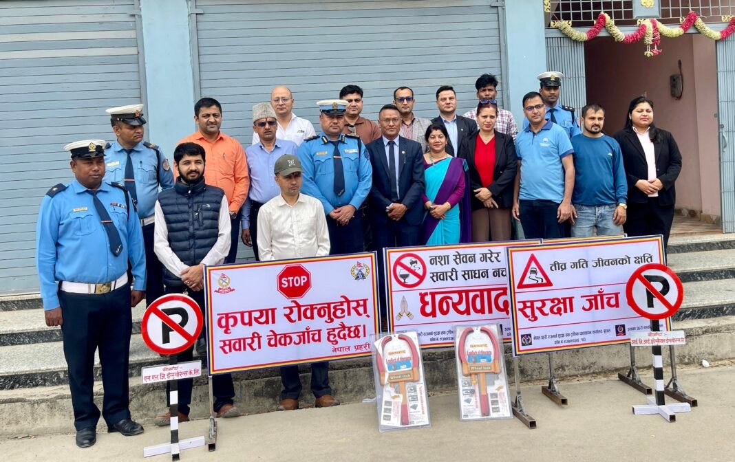 नेपाल विमा प्राधिकरण लुम्बिनी प्रदेशले ट्राफिक जानकारी मुलक बोर्ड ४ थान ,No Parkong बोर्ड १० थान ,Wheel Lock २ थान गरि करिव ५० हजार रुपैयाँ बरावरको सामाग्री सहयोग स्वरुप उपलब्ध गराएको नेपाल प्रहरी राजमार्ग सुरक्षा तथा ट्राफिक व्यवस्थापन कार्यालय बुटवलका कार्यालय प्रमुख प्रहरी उपरीक्षक श्याम बहादुर खत्रीले बताउनुभयो ।