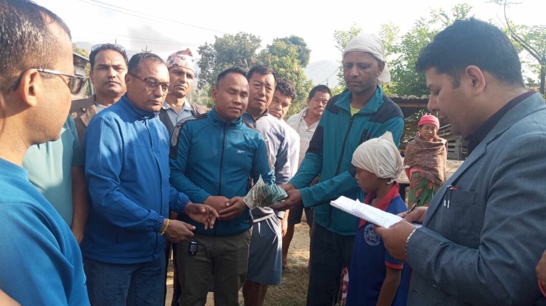 क्यान्सर रोग बाट ग्रसित क्यान्सरको उपचार गर्दै गर्दा उनको मृत्यु भए पछि उनको परिवार समस्यामा परेको थियो । उनको पारिवारिक समस्यालाइ मध्यनजर गर्दै थोरै भए पनि सहज होस भनि आर्थिक तथा जिन्सी सहयोग गरिएको गुल्मेली एकता समाज सैनामैना १ का अध्यक्ष दीर्घनारायण पाण्डेले बताउनुभयो ।