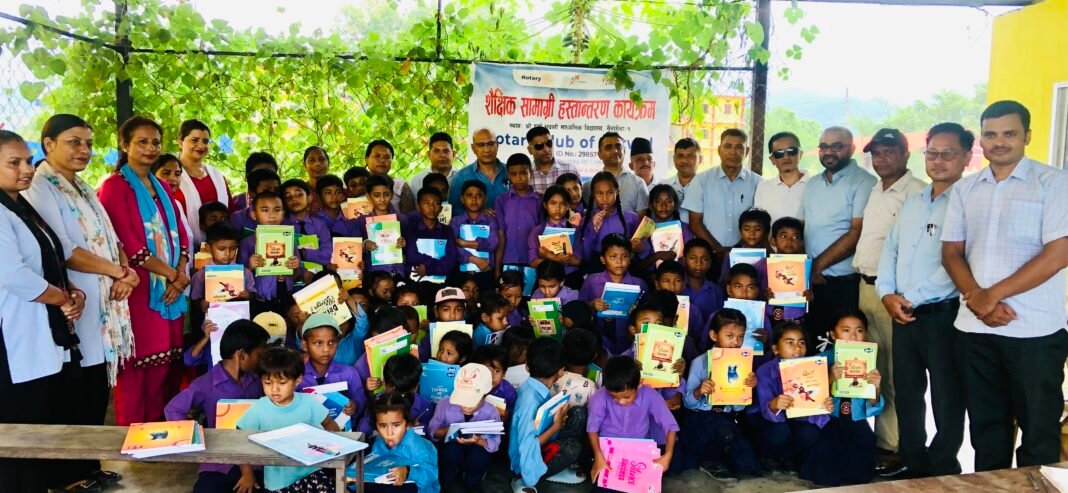 १० असार बुटवल । रोटरी क्लव अफ बुटवलले रुपन्देहीको सैनामैना १ मा रहेको श्री दुर्गा भवानी माध्यमिक विधालयका विधार्थीहरुलाई शैक्षिक सामाग्री हस्तान्तरण गरेको छ ।